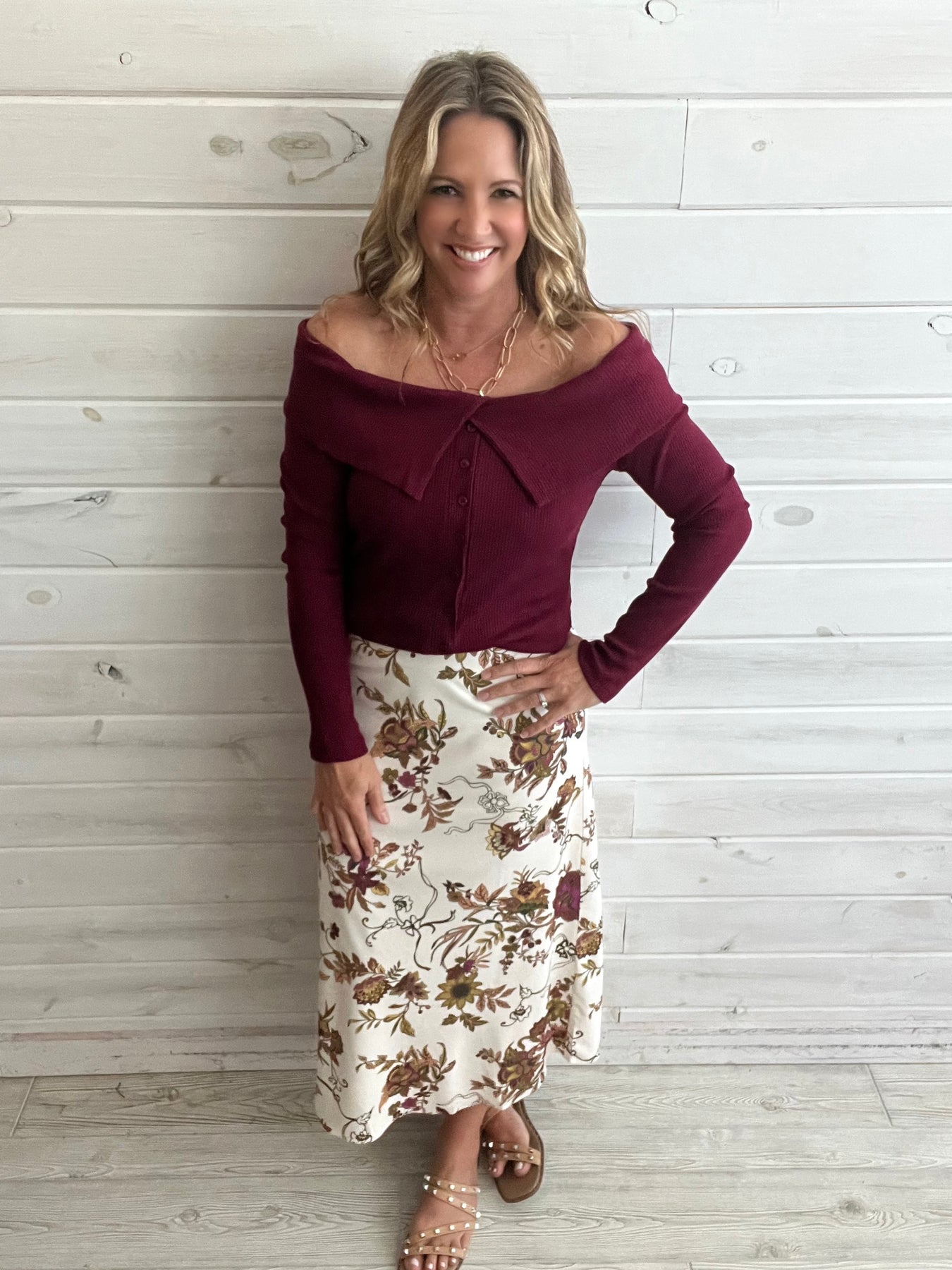 Ivory Floral Maxi Skirt