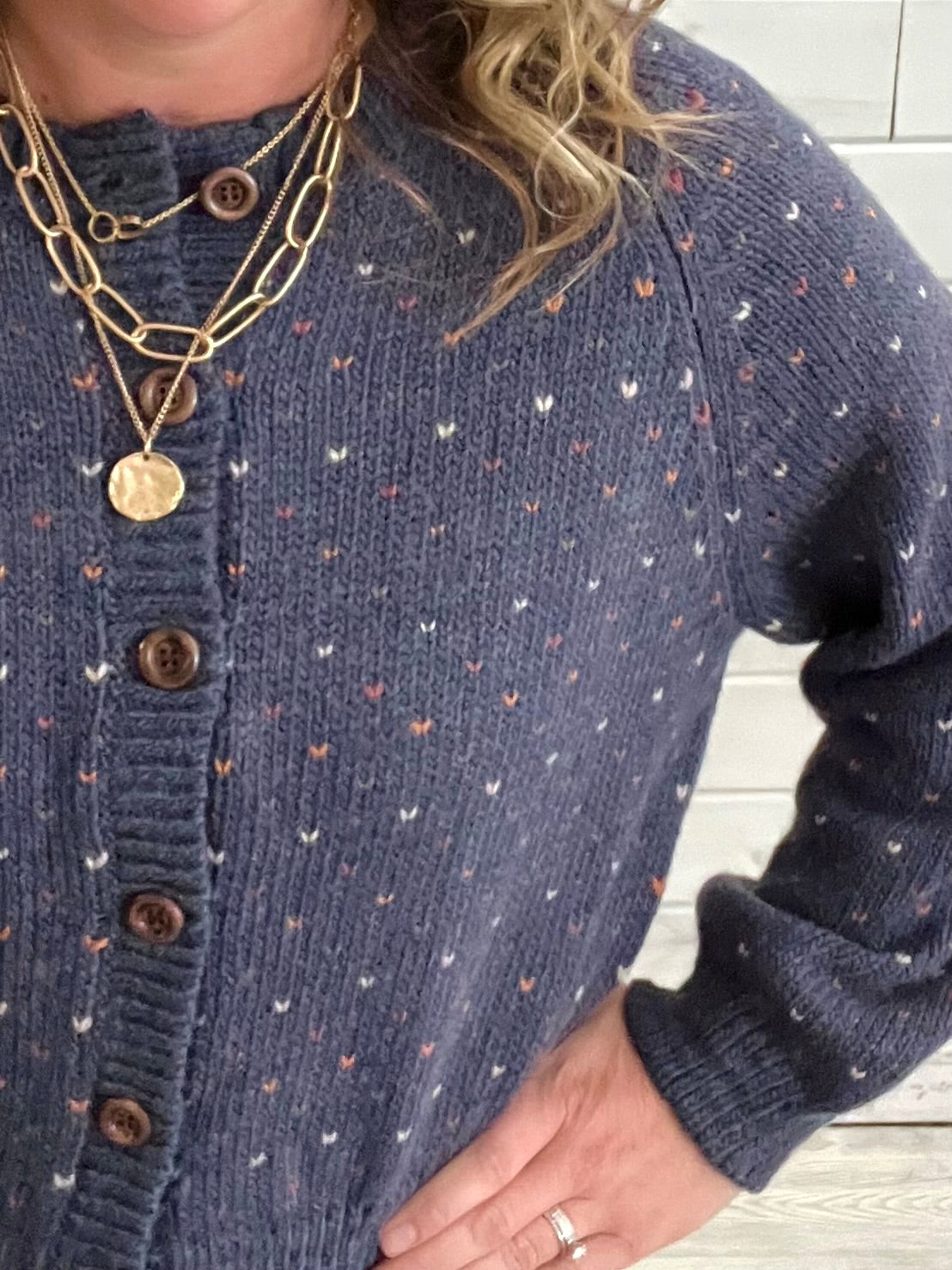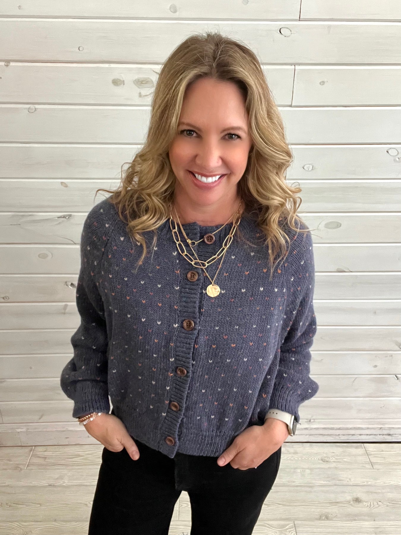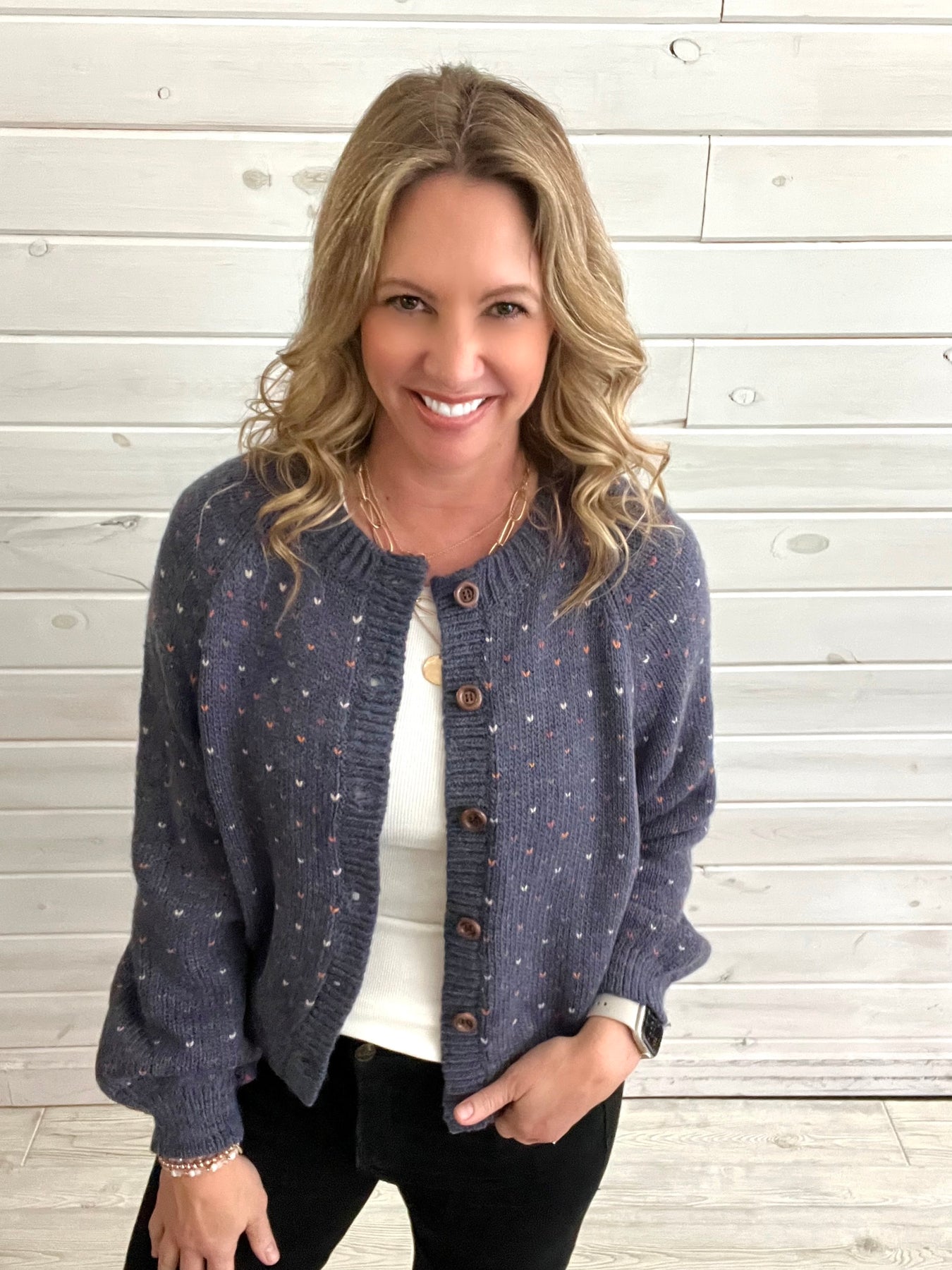 Navy Print Button Cardigan