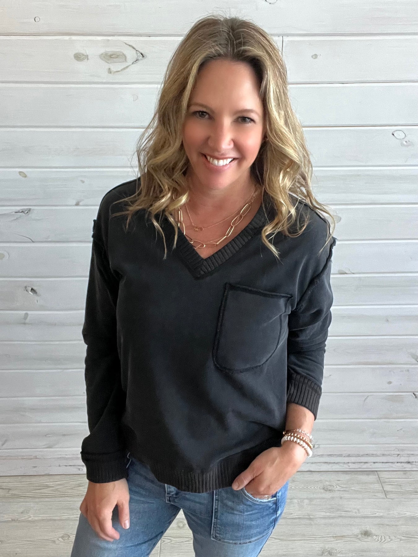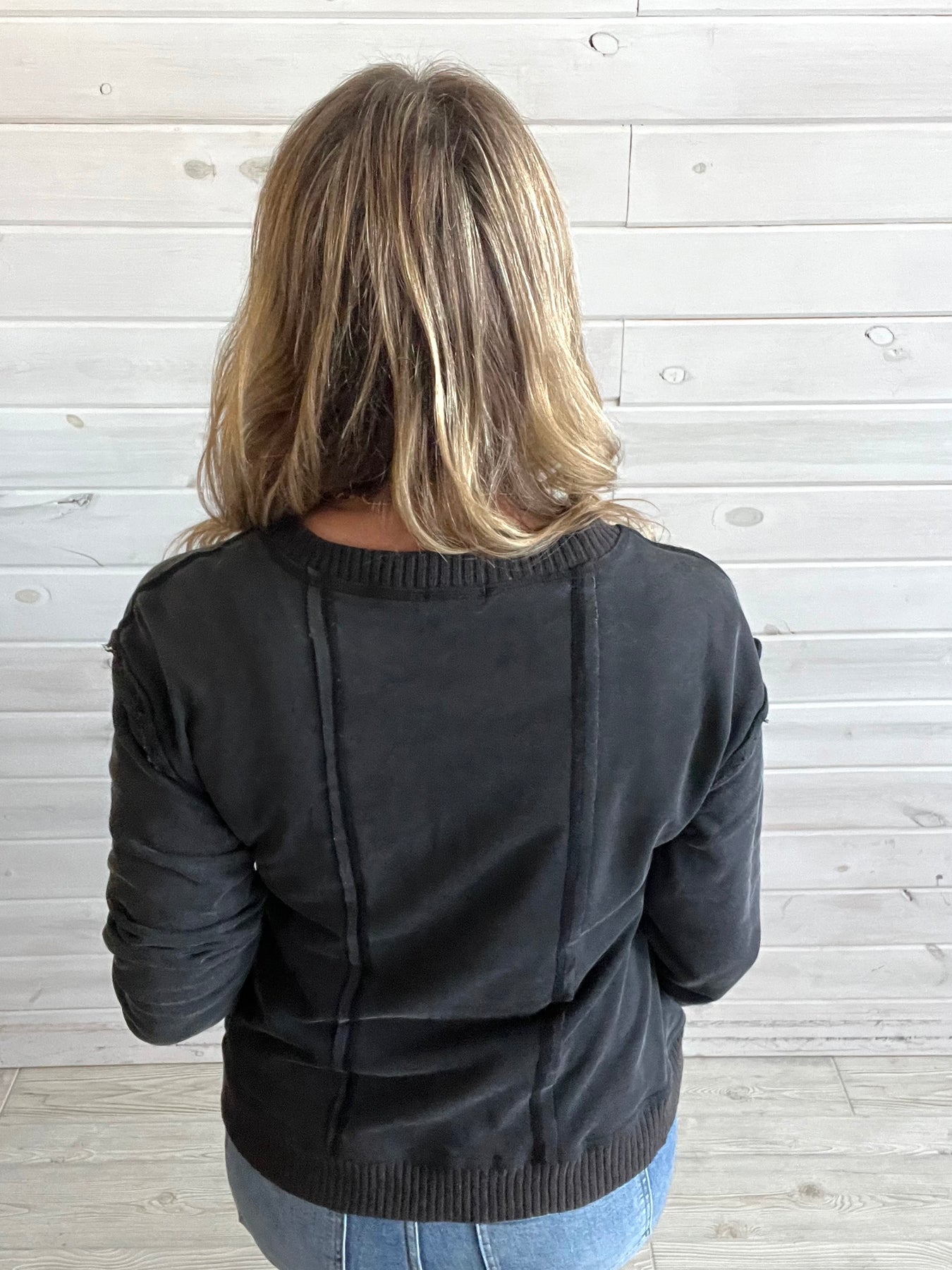 Washed Black V-neck Sweatshirt