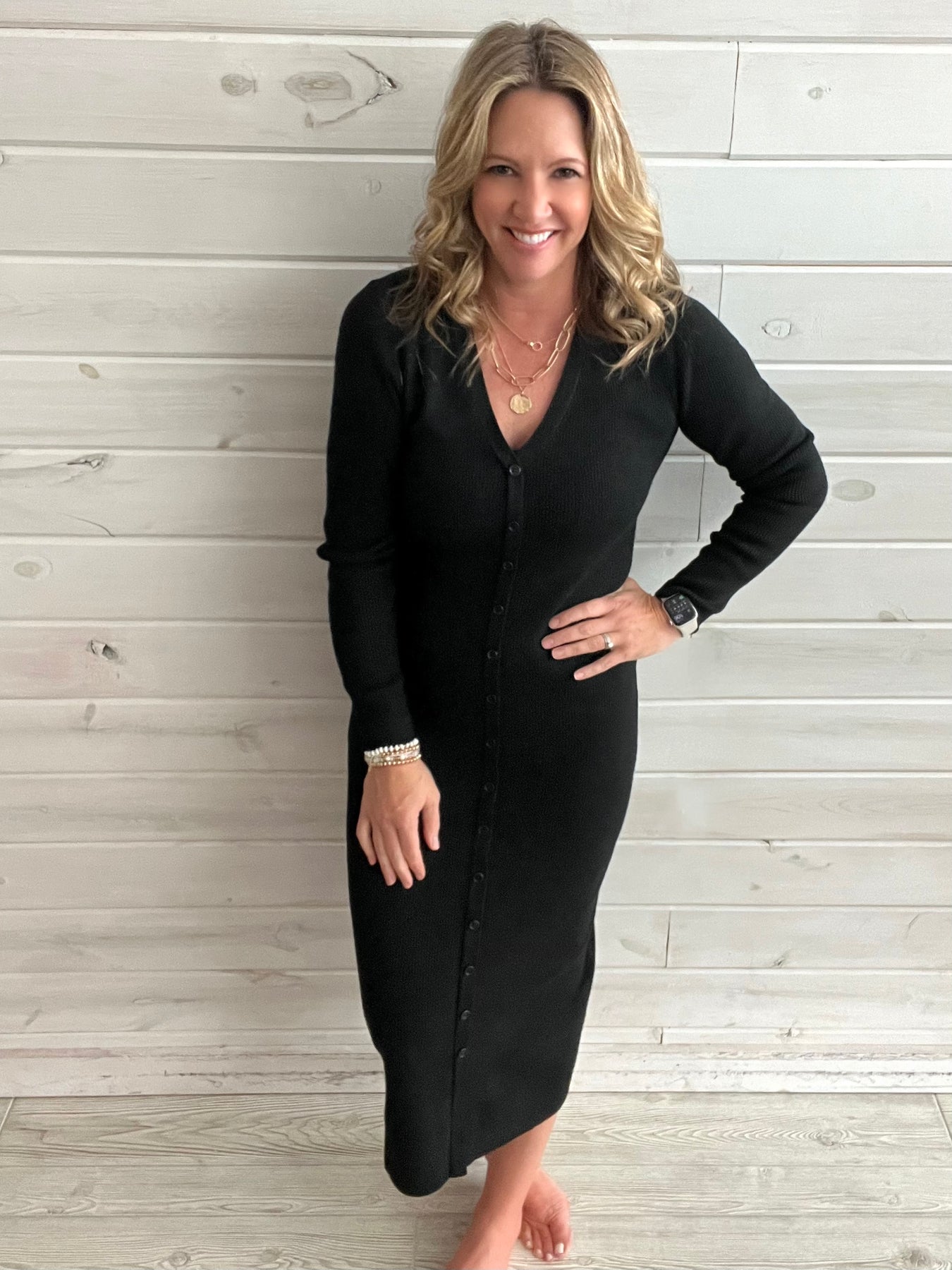 Charcoal Ribbed Button Dress