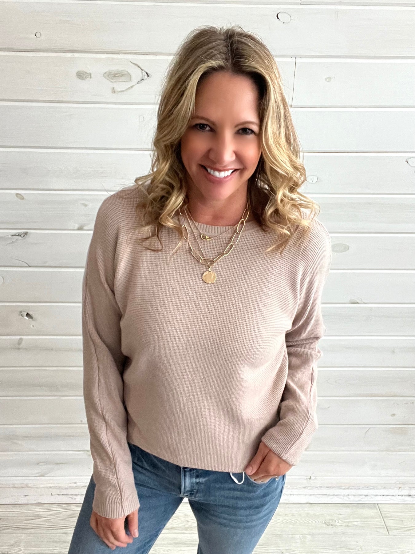 Crewneck Waffle Knit Sweater (2 Colors)