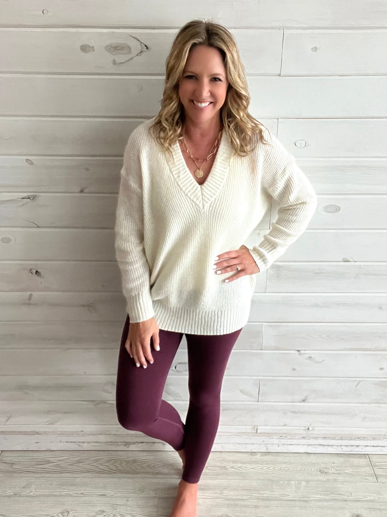 Ivory V-neck Relaxed Sweater