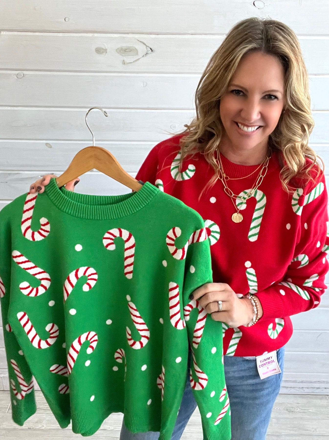 [{"id":51684832706854,"title":"Red \/ S","option1":"Red","option2":"S","option3":null,"sku":null,"requires_shipping":true,"taxable":false,"featured_image":null,"available":true,"name":"Candycane Sweater (2 Colors) - Red \/ S","public_title":"Red \/ S","options":["Red","S"],"price":5400,"weight":635,"compare_at_price":null,"inventory_quantity":2,"inventory_management":"shopify","inventory_policy":"deny","barcode":"32706854","requires_selling_plan":false,"selling_plan_allocations":[]},{"id":51684832739622,"title":"Red \/ M","option1":"Red","option2":"M","option3":null,"sku":null,"requires_shipping":true,"taxable":false,"featured_image":null,"available":true,"name":"Candycane Sweater (2 Colors) - Red \/ M","public_title":"Red \/ M","options":["Red","M"],"price":5400,"weight":635,"compare_at_price":null,"inventory_quantity":2,"inventory_management":"shopify","inventory_policy":"deny","barcode":"32739622","requires_selling_plan":false,"selling_plan_allocations":[]},{"id":51684832772390,"title":"Red \/ L","option1":"Red","option2":"L","option3":null,"sku":null,"requires_shipping":true,"taxable":false,"featured_image":null,"available":true,"name":"Candycane Sweater (2 Colors) - Red \/ L","public_title":"Red \/ L","options":["Red","L"],"price":5400,"weight":635,"compare_at_price":null,"inventory_quantity":2,"inventory_management":"shopify","inventory_policy":"deny","barcode":"32772390","requires_selling_plan":false,"selling_plan_allocations":[]},{"id":51684832805158,"title":"Red \/ XL","option1":"Red","option2":"XL","option3":null,"sku":null,"requires_shipping":true,"taxable":false,"featured_image":null,"available":true,"name":"Candycane Sweater (2 Colors) - Red \/ XL","public_title":"Red \/ XL","options":["Red","XL"],"price":5400,"weight":635,"compare_at_price":null,"inventory_quantity":1,"inventory_management":"shopify","inventory_policy":"deny","barcode":"32805158","requires_selling_plan":false,"selling_plan_allocations":[]},{"id":51684832837926,"title":"Green \/ S","option1":"Green","option2":"S","option3":null,"sku":null,"requires_shipping":true,"taxable":false,"featured_image":null,"available":true,"name":"Candycane Sweater (2 Colors) - Green \/ S","public_title":"Green \/ S","options":["Green","S"],"price":5400,"weight":635,"compare_at_price":null,"inventory_quantity":2,"inventory_management":"shopify","inventory_policy":"deny","barcode":"32837926","requires_selling_plan":false,"selling_plan_allocations":[]},{"id":51684832870694,"title":"Green \/ M","option1":"Green","option2":"M","option3":null,"sku":null,"requires_shipping":true,"taxable":false,"featured_image":null,"available":true,"name":"Candycane Sweater (2 Colors) - Green \/ M","public_title":"Green \/ M","options":["Green","M"],"price":5400,"weight":635,"compare_at_price":null,"inventory_quantity":2,"inventory_management":"shopify","inventory_policy":"deny","barcode":"32870694","requires_selling_plan":false,"selling_plan_allocations":[]},{"id":51684832903462,"title":"Green \/ L","option1":"Green","option2":"L","option3":null,"sku":null,"requires_shipping":true,"taxable":false,"featured_image":null,"available":true,"name":"Candycane Sweater (2 Colors) - Green \/ L","public_title":"Green \/ L","options":["Green","L"],"price":5400,"weight":635,"compare_at_price":null,"inventory_quantity":2,"inventory_management":"shopify","inventory_policy":"deny","barcode":"32903462","requires_selling_plan":false,"selling_plan_allocations":[]},{"id":51684832936230,"title":"Green \/ XL","option1":"Green","option2":"XL","option3":null,"sku":null,"requires_shipping":true,"taxable":false,"featured_image":null,"available":true,"name":"Candycane Sweater (2 Colors) - Green \/ XL","public_title":"Green \/ XL","options":["Green","XL"],"price":5400,"weight":635,"compare_at_price":null,"inventory_quantity":1,"inventory_management":"shopify","inventory_policy":"deny","barcode":"32936230","requires_selling_plan":false,"selling_plan_allocations":[]}]