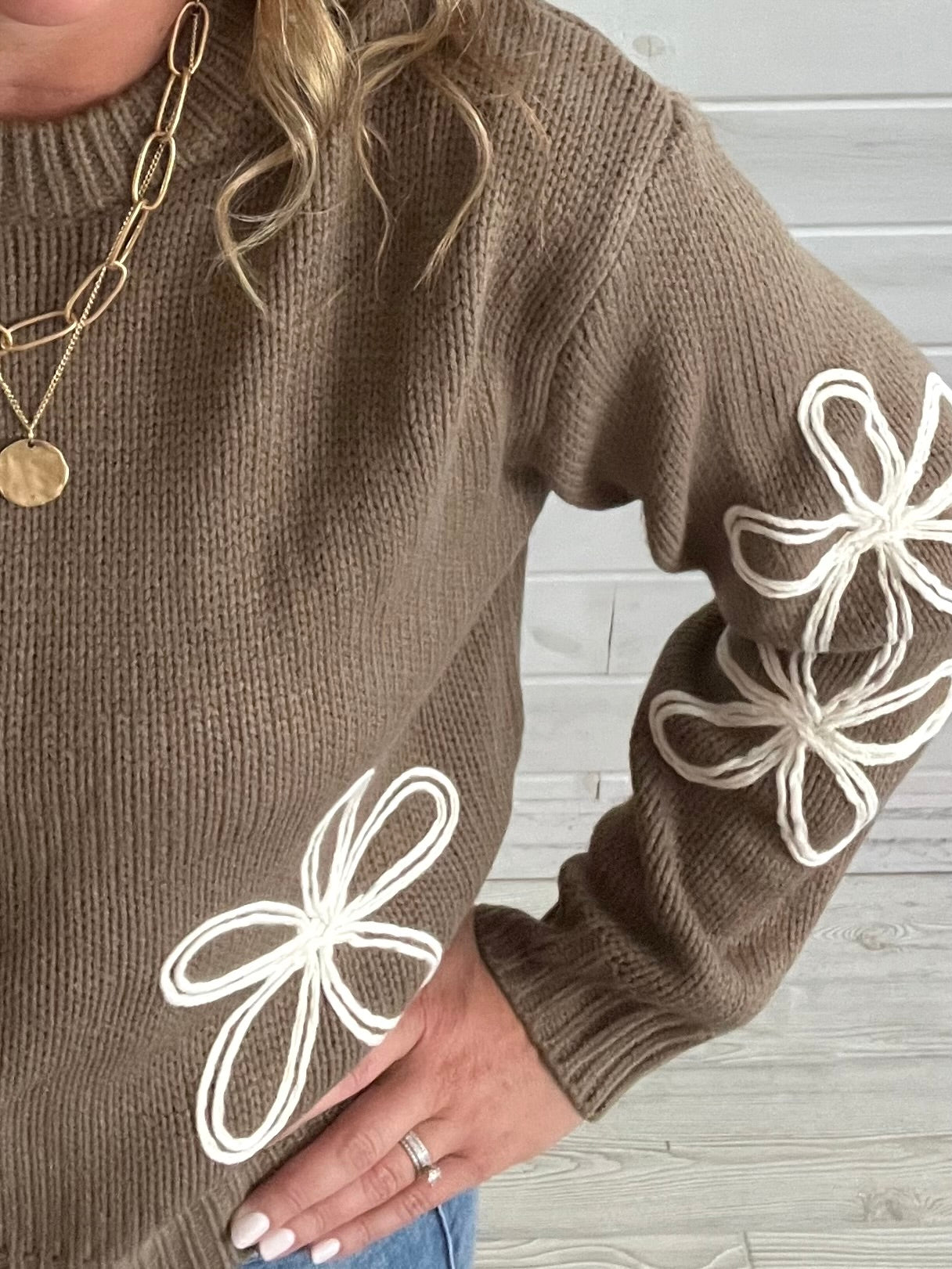 Olive Flower Sweater