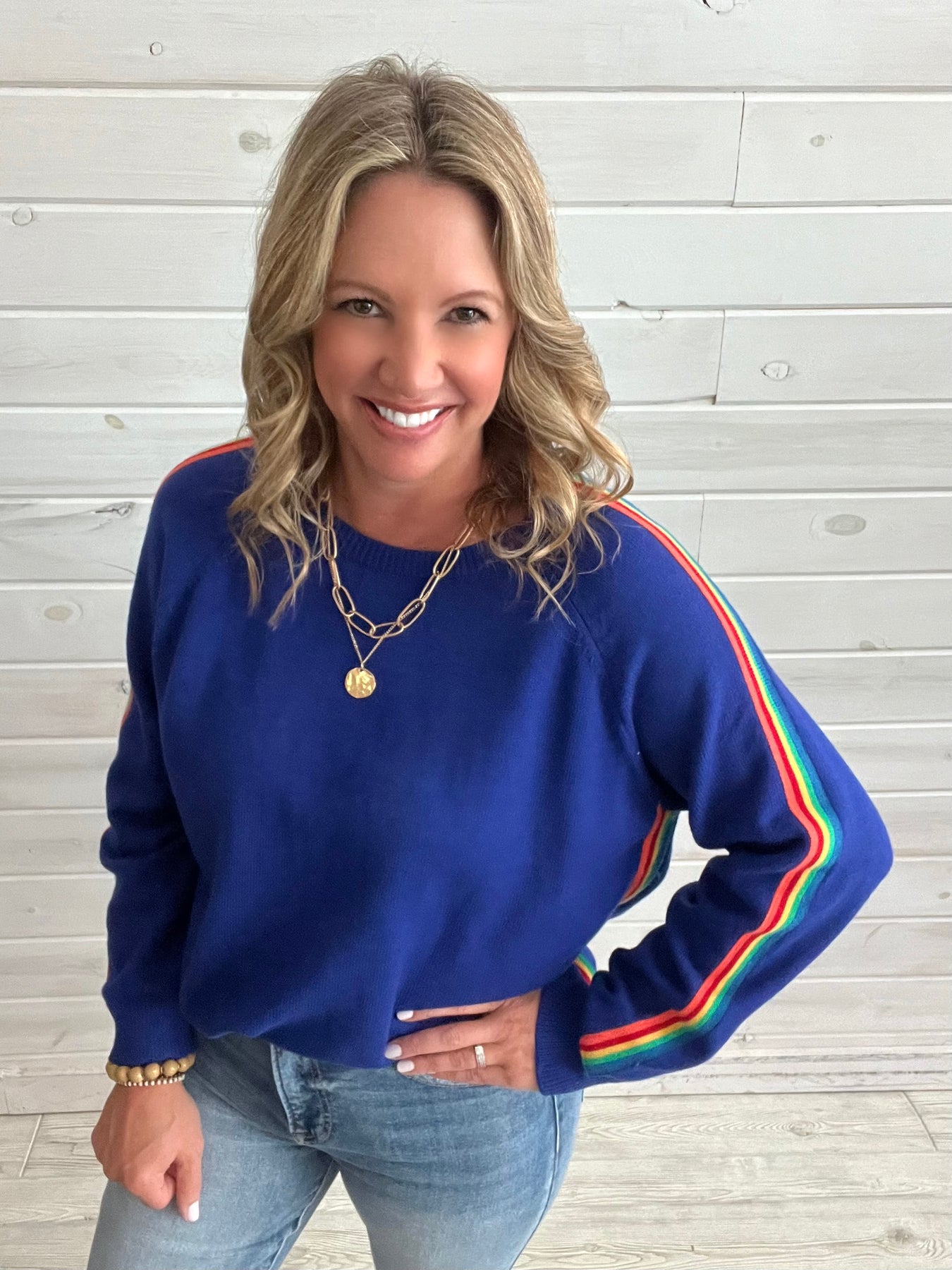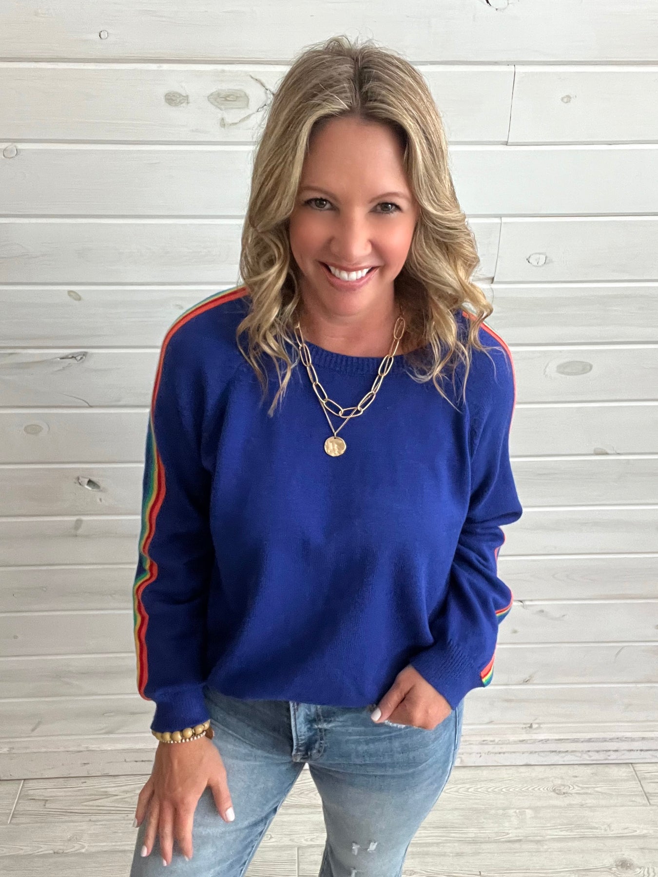 Rainbow Trim Crewneck Sweater (2 Colors)