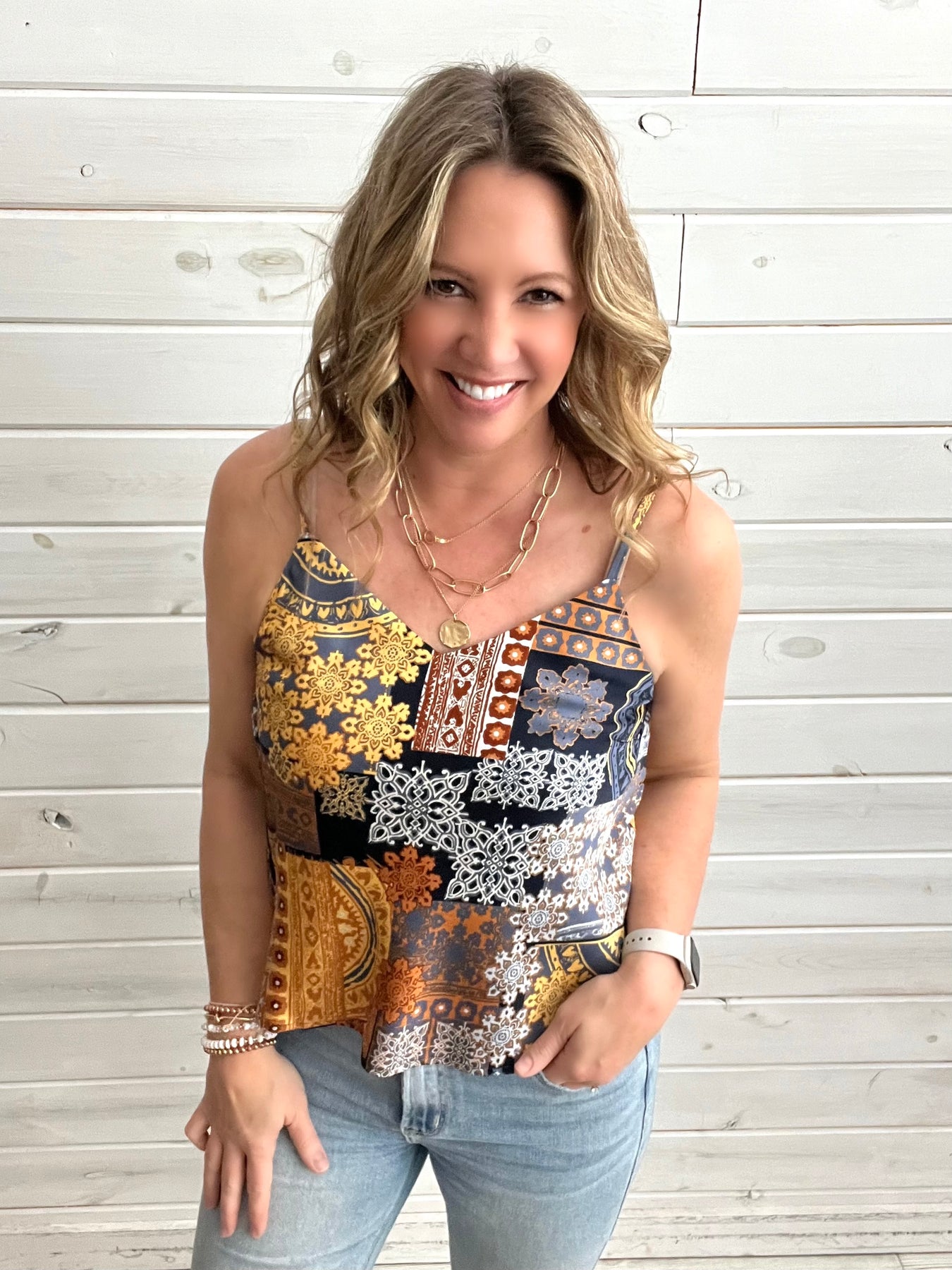 Blue Print Silk Tank
